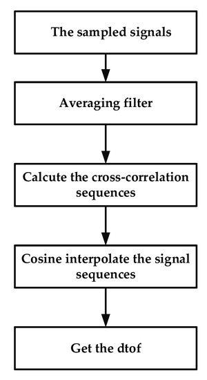 - Calculate the final dTof using the offset, M, and sample rate fs (Equation (14)).