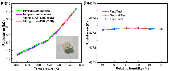 (a) The resistance of the temperature sensor as a function of temperature. (b) Humidity characteristics of the device.