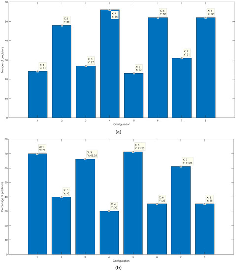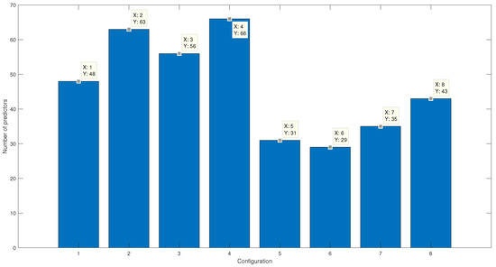 Figure 16 shows the number of features selected for the various configurations. A more significant number of features is used for the linear kernel, while for the Gaussian kernel, approximately half of the features are required to carry out the predictions.