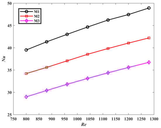 ANSYS Fluent 15.0 platform completes the numerical simulation of fluid and heat transfer characteristics of 3D heat sink (M1, M2 and M3). ICEM CFD (version 15.0) in commercial software is used to generate the mesh. The Reynolds number and volume flow rate corresponding to different flow velocities are shown in Table 4. In this paper, the solution method selected is SIMPLE, which is suitable for solving the coupling problem of pressure and velocity.