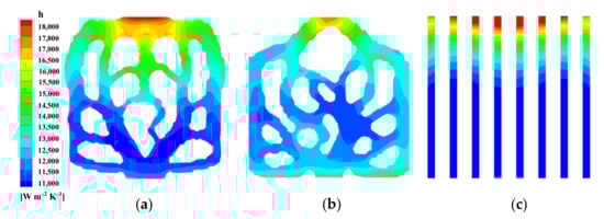 - Joo, Y.; Lee, I.; Kim, S.J. Efficient three-dimensional topology optimization of heat sinks in natural convection using the shape-dependent convection model. Int. J. Heat Mass Transf. 2018, 127, 32–40. [Google Scholar] [CrossRef]