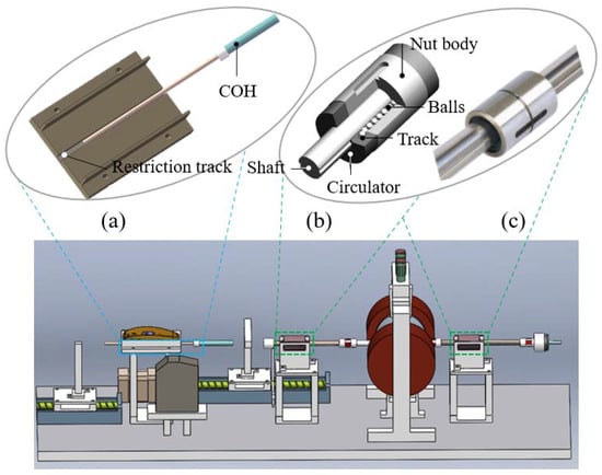 Structural design of operating tremor reduction in the master haptic device: (a) restriction track for COH; (b) structure diagram of ball spline; (c) actual picture of ball spline.