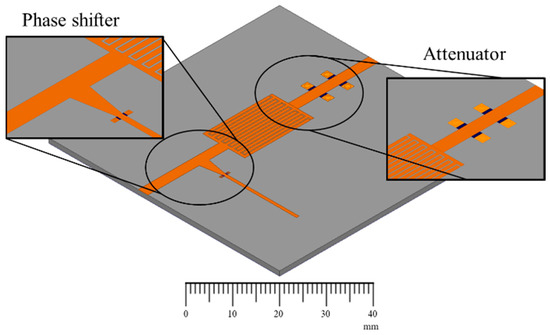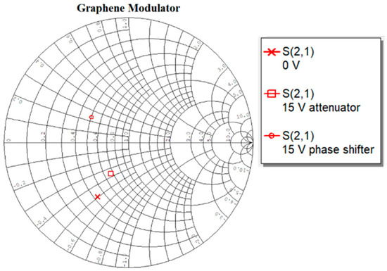 Several attempts have been made to exploit the variable conductivity for designing tunable microwave components. Attenuators, phase shifters and antennas based on graphene have been proposed in a number of works [6,7,8,9,10,11]. In all of the cases, either the amplitude or the phase was varied, exploiting the tunable conductive behavior of graphene. In the final version of the phase shifter in [11], the number of stubs were increased in order to maximize the phase variation in a graphene-loaded microstrip line. However, it has been noted that the variation of both the amplitude and phase is important to the microwave community for many applications. In quadrature amplitude modulation schemes, the specific variation of the amplitude and phase of the signal is required, in order to complete a set of points on a constellation diagram, each representing a specific amplitude and phase [12,13]. In many beam-forming networks, a specific amplitude and phase is required to excite the individual elements of the network [14,15].