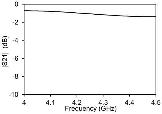In order to check the functionality of the IDC and the amplitude-phase variation transmission line, the simulations were performed with a commercial FEM tool Ansys HFSS. The simulation results show that the IDC introduces less than 2 dB of the insertion loss in the system, as shown in Figure 3. This is due to the optimization of the IDC for the least insertion loss in the operating frequency of the amplitude-phase variation transmission line.
