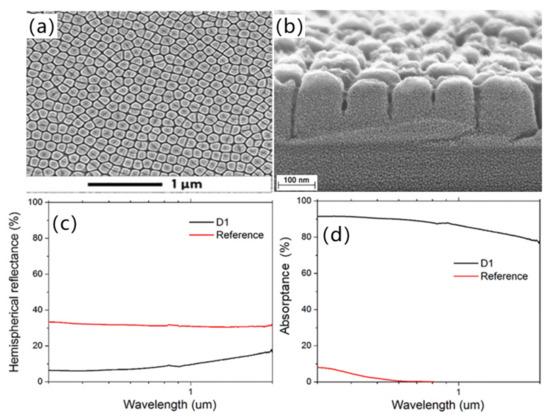 - Yang, J.; Luo, F.F.; Kao, T.S.; Li, X.; Ho, G.W.; Teng, J.H.; Luo, X.G.; Hong, M.H. Design and fabrication of broadband ultralow reflectivity black Si surfaces by laser micro/nanoprocessing. Light Sci. Appl. 2014, 3, 185. [Google Scholar] [CrossRef]