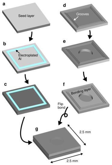 - Al Farisi, M.S.; Tsukamoto, T.; Tanaka, S. Fully CMOS-Compatible Wafer Bonding Based on Press Marking Using Thick Electroplated Aluminum. In Proceedings of the 2021 21st IEEE International Conference on Solid-State Sensors, Actuators and Microsystems (Transducers), Online, 20–24 June 2021; pp. 1138–1141. [Google Scholar] [CrossRef]