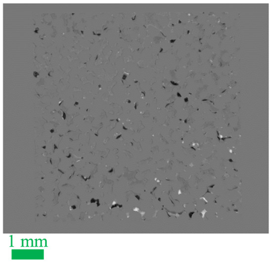 Grayscale difference image ∆I(x,y) = I2(x,y) − I1(x,y), mostly revealing changes in the distributions of brine and oil in deep pores before (I1) and after (I2) the 8 days of exposure to HSW at 90 °C in absence of flow. In absence of changes (e.g., the glass parts), the pixels show a gray value of 120. Darker areas (gray value 0–119) indicate the replacement of brine by CRO, while it is vice versa for the brighter pixels (gray value 121–255). Further details on the calculation and presentation of the grayscale difference image can be found in Figure S10.