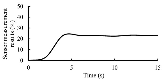 The dynamic characteristic curve of the EEMFI sensor was plotted according to the recorded data (see Figure 10), and the relevant dynamic characteristic indices were calculated (Table 6). The experimental results showed that the sensor delay time was 3.9 s, and for agriculture and forestry requirements, a delay of 3.9 s does not affect the use of the sensor [43].