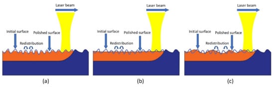 Mechanism diagram of laser polishing: (a) incomplete melting; (b) shallow surface melting; (c) surface over-melting.
