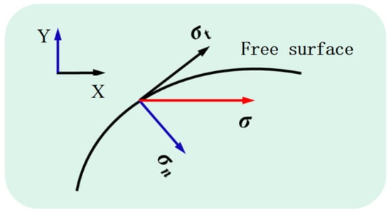 where denotes the capillary force acting in the normal direction, and the capillary force is related to the curvature of the free surface profile, which can be expressed as curvature. expresses the thermal capillary force acting in the tangent direction, which is the tangential force caused by the temperature gradient on the surface of the molten pool, as shown in Figure 10, and its governing equation is as follows: