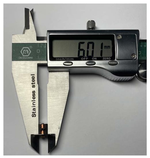 The rotor of the micro claw pole stepper motor studied in this paper is generally composed of a multi-pole permanent magnet material radially magnetized and a rotating shaft, to obtain a higher surface magnetic density. The permanent magnet material is NdFeB-n52 permanent magnet material. The stator consists of a concentric annular excitation coil and a yoke with claw teeth. As shown in Figure 1, the claw pole is divided into two sections along the axial direction, and the two sections are staggered by one quarter of the tooth pitch (90 electrical angle). Each segment of the two-phase motor consists of 10 claw teeth that mesh-up and down. The outer diameter of the micromotor is only 6 mm, and the step angle is 18°. Figure 2 shows a photo of the motor with a diameter of 6 mm (0.01 mm measurement error). Table 1 shows the specific parameter specifications of the model of the micromotor analyzed in this paper. As shown in Figure 3, in order to better and more accurately measure the static torque of the motor, according to these parameters, the model of the motor is accurately established in the finite element simulation software Infolytica MagNet.