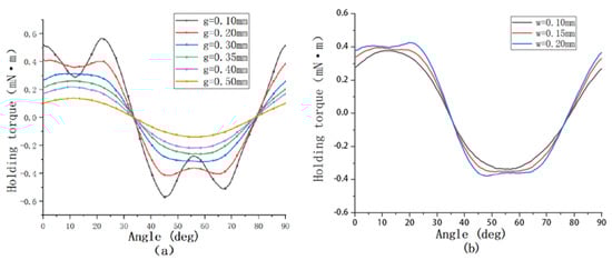 (a) Comparison of holding torque at different air gaps; (b) Comparison of holding torque at different gaps between claw poles.