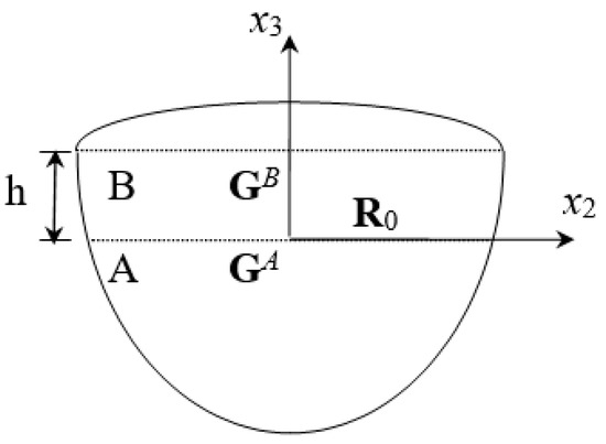 In the surface substrate B, assuming that there is a reflecting coefficient tensor R0 at the boundary with A at x3 = 0, substrate B’s wave propagation impedance can be obtained from Equation (17) as follows: