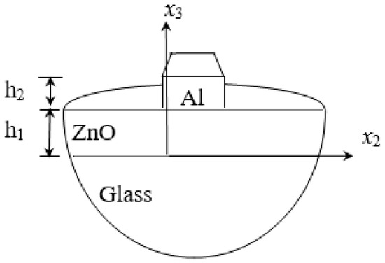 In Figure 4, consider that the layered materials are ZnO/Glass and Al/ZnO/Glass. As aluminum (Al) and glass are isotropic materials and the symmetry axis of zinc oxide is perpendicular to the surface of the substrate, the wave propagation of the SAW is not connected to direction. Table 1, Table 2 and Table 3 list the properties of various materials.