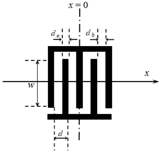 The interdigitated transducer’s delta function model proposed by Tancrell et al. [12,13] estimates the IDT’s frequency response. Although this model makes many simplifications, it is still helpful in the preliminary design of SAW devices.
