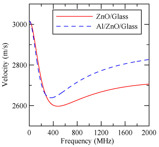 Al (0.5 µm)/ZnO (1 µm)/glass dispersion curve.