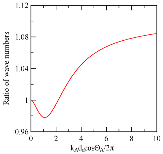 where is the parallel wave vector’s longitudinal displacement, and is the vertical wave vector’s transverse in-plane displacement. If the free boundary 0 and the electrical boundary condition is closed , the proportional relationship between the displacement components in the direction and the direction needs to be considered in addition to Equation (28):
