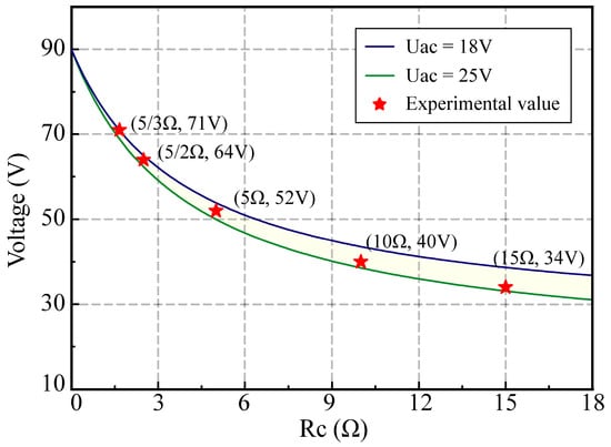 Theoretical values and experimental values of gap voltage for different Rc.