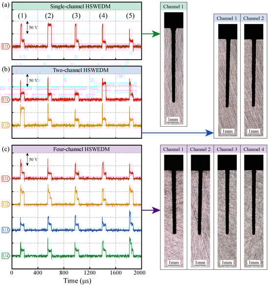 According to Equation (6), it can be inferred that the electrical signals of each channel in multi-channel HSWEDM exhibit a high degree of coupling. Once the voltage in one channel changes, the voltages in other channels will inevitably be altered accordingly.