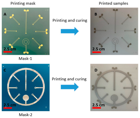 To demonstrate this, we have realized different heat masks and printed electronic circuits as depicted in Figure 4.