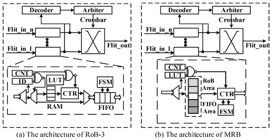 5. Li, C.; Dong, D.; Lu, Z.; Liao, X. RoB-Router: A Reorder Buffer Enabled Low Latency Network-on-Chip Router. IEEE Trans. Parallel Distrib. Syst. 2018, 29, 2090–2104. [Google Scholar] [CrossRef]