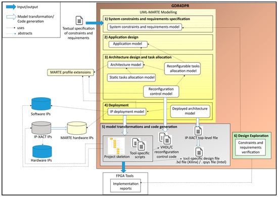 - Vidal, J.; De Lamotte, F.; Gogniat, G.; Diguet, J.-P.; Soulard, P. UML design for dynamically reconfigurable multiprocessor embedded systems. In Proceedings of the 2010 Design, Automation & Test in Europe Conference & Exhibition (DATE 2010), Dresden, Germany, 8–12 March 2010; pp. 1195–1200. [Google Scholar] [CrossRef]