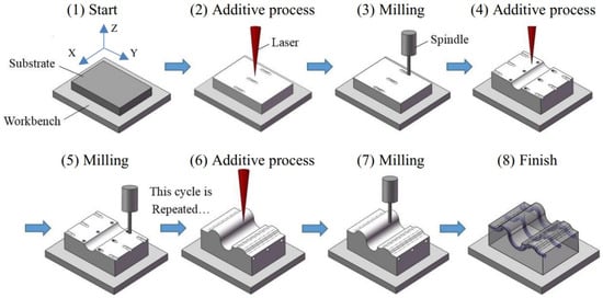 Schematic of hybrid additive and subtractive processes (Reprinted with permission from Ref. []. Copyright 2016 Elsevier B.V.).