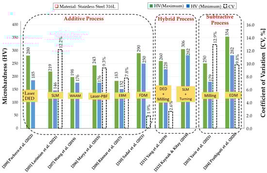 - Kaynak, Y.; Kitay, O. Porosity, Surface Quality, Microhardness and Microstructure of Selective Laser Melted 316L Stainless Steel Resulting from Finish Machining. J. Manuf. Mater. Process. 2018, 2, 36. [Google Scholar] [CrossRef]