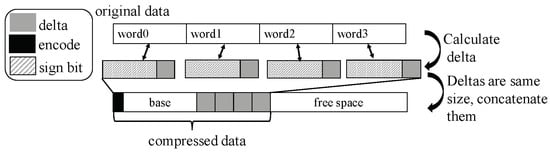 - Pekhimenko, G.; Seshadri, V.; Mutlu, O.; Kozuch, M.A.; Gibbons, P.B.; Mowry, T.C. Base-delta-immediate compression: Practical data compression for on-chip caches. In Proceedings of the 2012 21st International Conference on Parallel Architectures and Compilation Techniques (PACT), Minneapolis, MN, USA, 19–23 September 2012; pp. 377–388. [Google Scholar]