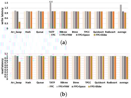 Results of the read/write latency under four compared methods. (a) Write latency; (b) read latency.