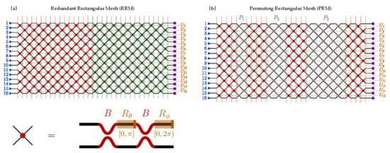 (a) Redundant rectangular mesh; (b) permuting rectangular mesh. Reprinted with permission from ref. [32]. Copyright 2019, APS.