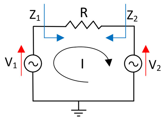 where and are the currents supplied by the sources and , respectively. Therefore, if the currents are not null, the load impedance seen by the source is [7]: