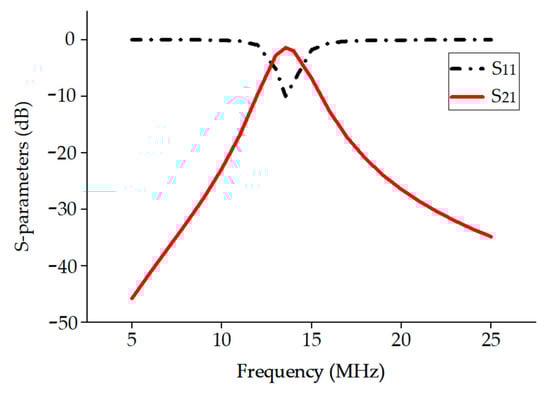 where , , are the quality factors of the primary and secondary coils, respectively; is the loaded quality factor of the secondary coil and . is the coupling coefficient between the coils, which is related to the mutual inductance and self-inductance of the coils.