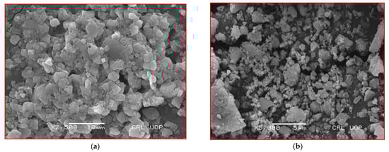 SEM images of C. vulgare-mediated ZnONPs using ZnSO4 salt at various pH values (a) at pH 5 and (b) at pH 9.