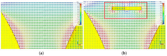 The electric field changes before and after loading the director. (a) The electric field simulation before loading the director. (b) The electric field changes after loading the director.