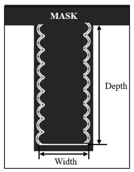 - Guo, M.; Chou, X.; Mu, J.; Liu, B.; Xiong, J. Fabrication of micro-trench structures with high aspect ratio based on DRIE process for MEMS device applications. Microsyst. Technol. 2013, 19, 1097–1103. [Google Scholar] [CrossRef]