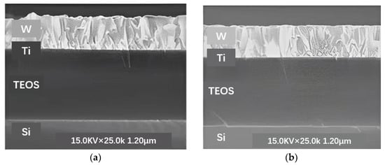 Comparative cross-section of the chip with or without the CMP process; (a) before CMP SEM image; (b) the chip has a CMP cross-section (Reprinted with permission from Ref. [10], 2021, Wu, D.-W).