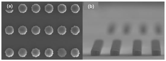 The morphology of the copper column after back outcrop; (a) top view of the Cu column; (b) side view of the Cu column (Reprinted with permission from Ref. [10], 2021, Wu, D.-W).