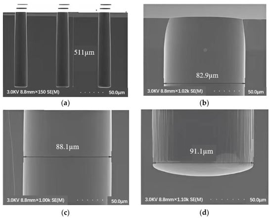 Therefore, the precision of the processed TSV products is small and the error is large; thus, the deep silicon etching of TSV often adopts DRIE etching technology at present [27].