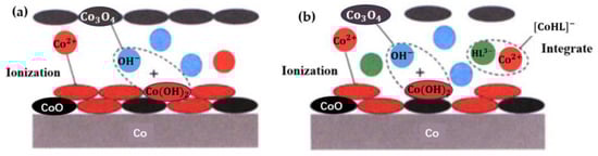 - Hu, L.; Zhang, X.; Wang, H.; Zhang, J.; Xia, R.; Cao, J.; Pan, G. Experimental and density functional theory study of complexing agents on cobalt dissolution in alkaline solutions. Electrochim. Acta 2021, 375, 137977. [Google Scholar] [CrossRef]
