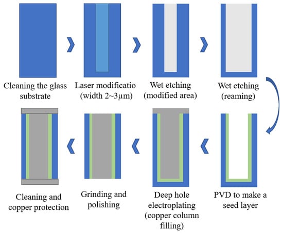 With the increasing demand for high-density integration, low power consumption and high bandwidth, creating more sophisticated interconnection technologies is becoming increasingly crucial. Three-dimensional (3D) integration technology is known as the fourth-generation packaging technology beyond Moore’s Law because of its advantages of low energy consumption, lightweight and high performance. Through-silicon via (TSV) is considered to be at the core of 3D integration because of its excellent electrical performance, lower power consumption, wider bandwidth, higher density, smaller overall size and lighter weight. Therefore, the particular emphasis of this review is the process flow of TSV technology. Among them, the research status of TSV hole etching, deep hole electroplating filling and chemical mechanical planarization (CMP) in TSV preparation process are introduced in detail. There are a multitude of inevitable defects in the process of TSV processing; thus, the stress problems and electrical characteristics that affect the reliability of TSV are summarized in this review. In addition, the process flow and process optimization status of through ceramic via (TCV) and through glass via (TGV) are discussed.