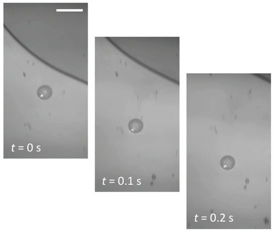 Sequential snapshots demonstrating the fast transport of a droplet by linearly translating the sample at 650 μm/s. The scale bar is 50 μm.
