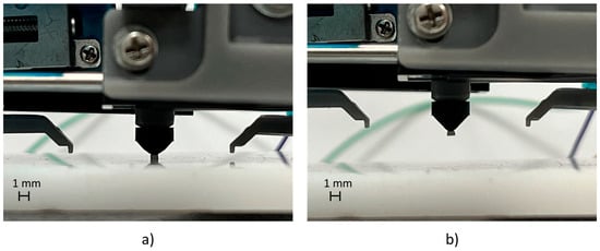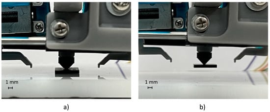 - Position 4 (Mechanical picking): The two fingers of the gripper are closed, and the component is picked. The fingers are moving, exploiting the designed closed-loop motion control for the finger axes. This position is shown in Figure 6a.