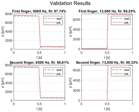 Finally, the tuning of the PID controllers was performed using the MATLAB PID tuner toolbox. A PI controller was selected for both axes, setting the robustness to the maximum value to avoid unwanted overshoots and increasing the performance as much as possible to improve the setpoint tracking and noise rejection trade-off. The PID controller values for the two finger axes are reported in Table 6 and the transfer function is: