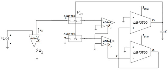 | [19] | 4 AD844 and 1 AD633 | 4 Resistors, 1 Capacitor | NA | NA | Floating | >1 mW | × | Circuit topology remains the same |