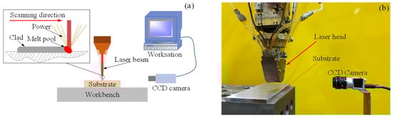 Laser solid forming (LSF) is a promising advanced digital additive manufacturing methodology. It seamlessly integrates the advantages of unrestricted solid shaping from rapid prototyping alongside high-performance cladding deposition facilitated by synchronous powder feeding laser cladding []. Due to its inherent benefits such as cost-effectiveness, reduced cycle time, exceptional performance, and rapid response capability, LSF has gained substantial traction in various industries, including the aerospace, marine, automotive, and defense sectors, in recent years [,]. The effect of LSF forming during the manufacturing process is influenced by a number of factors. Fluctuating parameters and environmental changes during the forming process can cause the cladding height to fluctuate away from the set value. The conventional approach of employing fixed Z-increments during the laser solid forming process has been shown through extensive research to result in substantial variations in the off-focus amount due to fluctuations in the cladding height. These variations, in turn, have been empirically established to exert a direct influence on the dimensional accuracy and mechanical characteristics of the fabricated component [,,,]. Consequently, the preservation of a consistent off-focus level throughout the forming procedure assumes critical importance in safeguarding the dimensional accuracy and quality of the fabricated part. By implementing real-time monitoring of cladding height variations and establishing a closed-loop Z-increments control system, significant enhancements can be achieved in both the accuracy and quality of the forming process for the part.