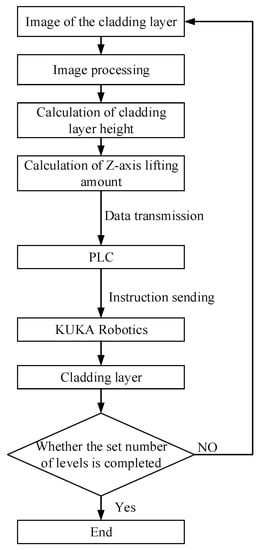 - The layer height of the cladding layer was calculated by Equation (21) and transmitted to the PLC from the host computer as the Z-increments;