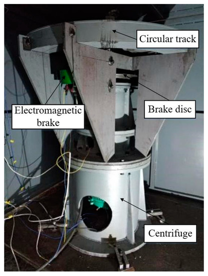 The experimental testing system was developed in this study. A three-phase variable-frequency motor with a controllable speed (FLSMV80M-18.5-1500, Emerson) was adopted for the centrifuge, which had a rated voltage of 380 V, a rated power output of 18.5 kW, and a rated motor speed of 1500 r/min. A frequency converter (M600, Emerson) with a rated voltage of 400 V, rated current of 63 A, rated power output of 30 kW, and working frequency of 50 Hz was used. The motor speed was remotely controlled by the communication between the frequency converter and the upper computer through RS-485. A photograph of the experimental testing system is presented in Figure 14.