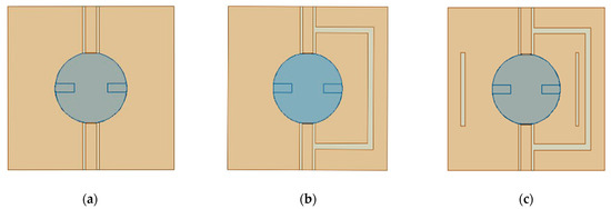 Design evolution of the proposed antenna. (a) Antenna 1. (b) Antenna 2. (c) Final antenna.