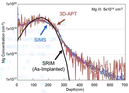 The implanted Mg profiles in the free-standing GaN substrate measured using Secondary Ion Mass Spectrometry (SIMS) and 3D-APT are shown in Figure 1.
